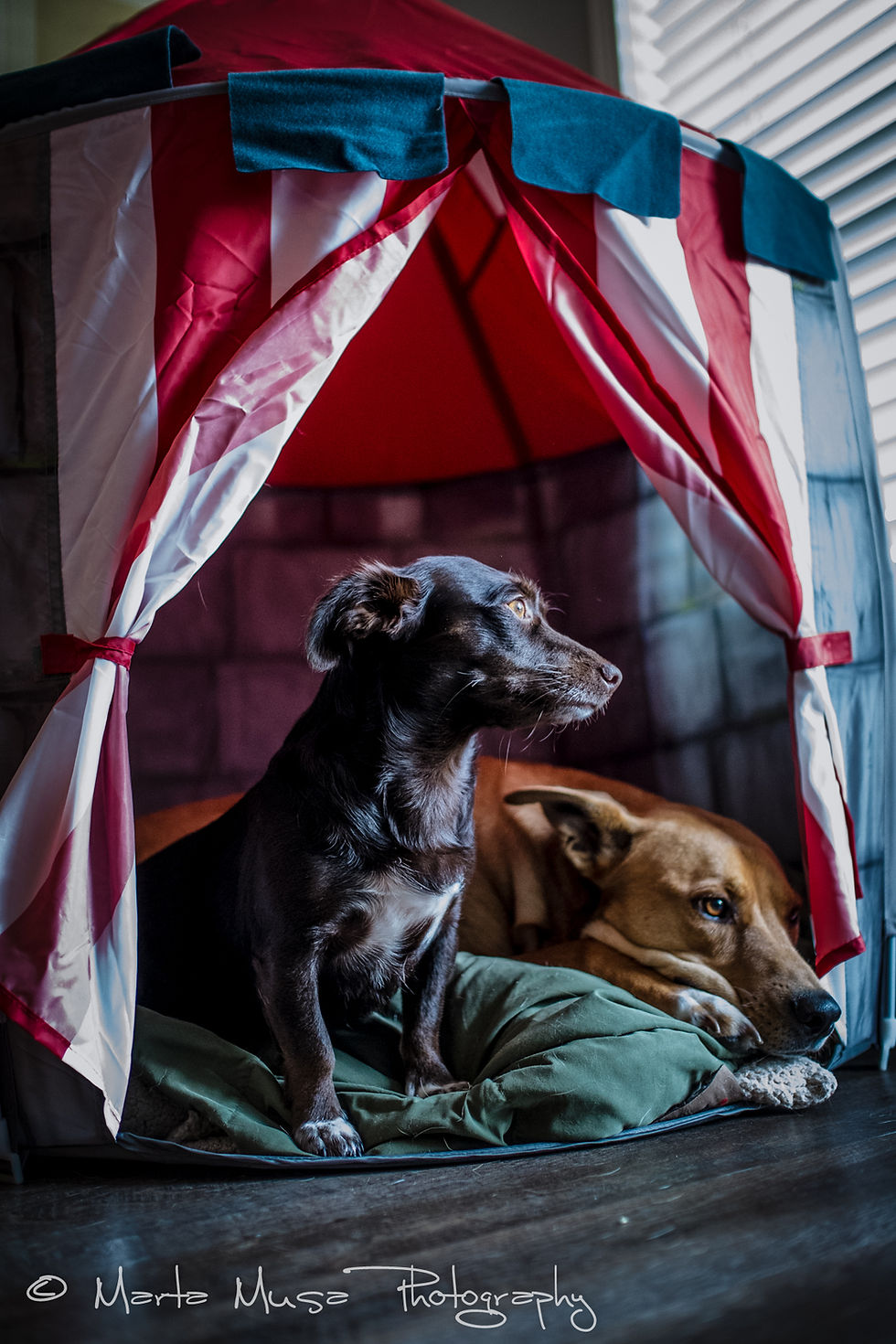 Fred says "Tank you tank you tank you to mah Auntie Helen for getting me dah castle. I missed mah house for dah last 7 months" Freddy used to have a play Castle for the longest time....he slept in in...hid all his "preciouses" in it....played in it....you could crawl into it with him and wrestle or cuddle...it was his favorite place...until a cerrtain short legged gal came along and decided that it was an indoor toilet.